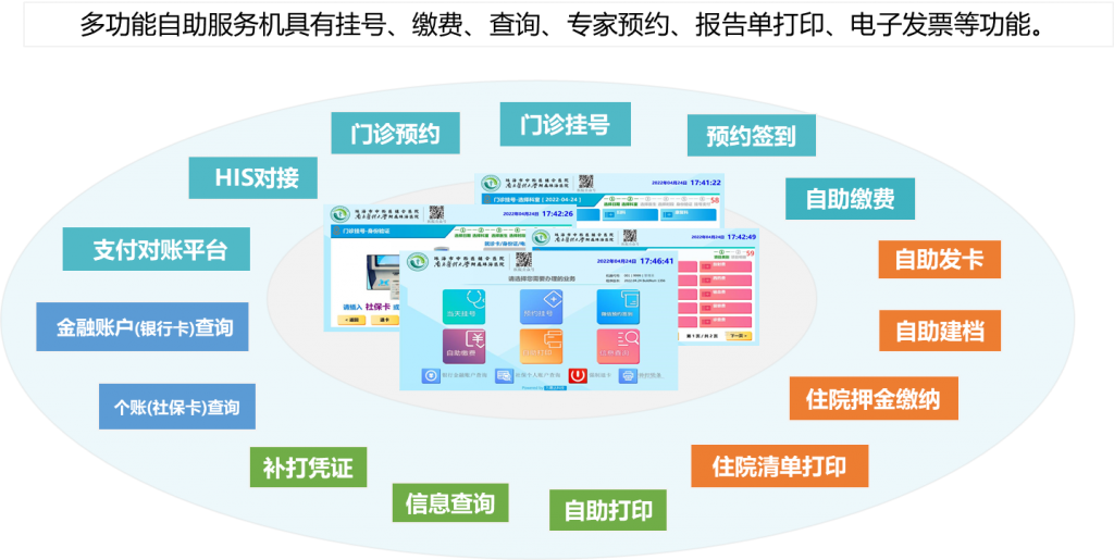 我们专门针对各级医疗机构打造的自助服务解决方案,特别针对基层机构解决门诊统筹、两病报销的自助结算。