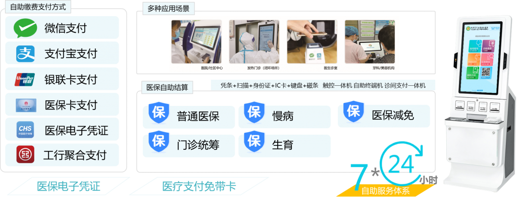 4. 支付渠道:微信、支付宝、银联卡、医保卡、电子医保卡